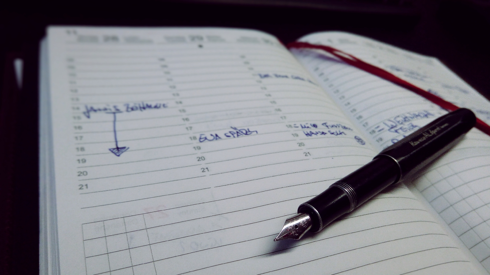 Es gibt viele Menschen, die neben wichtigen Terminen auch diverse Stichpunkte zu einem Termin, zum Tag oder zur Woche in den Kalender schreiben. Ich selber mache das auch. Hat etwas besonders gut geklappt, vermerke ich das im Kalender, eventuell im Notizbuch, welches aber auch mit in der Kalenderhülle hängt.