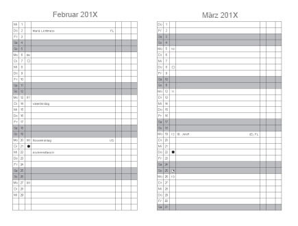 - Ein Monat pro Seite für das übernächste Jahr